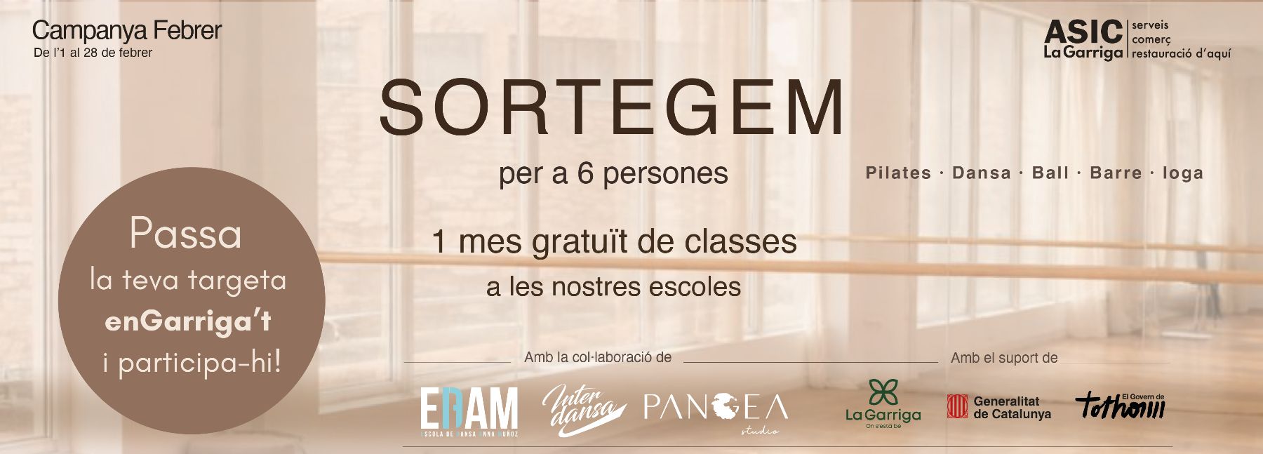 Aquest mes de febrer sortegem per a 6 persones un mes gratuït a les nostres escoles de dansa, pilates, ioga, ball i barre. Per participar només has de passar la Targeta Urbana als nostres establiments adherits!